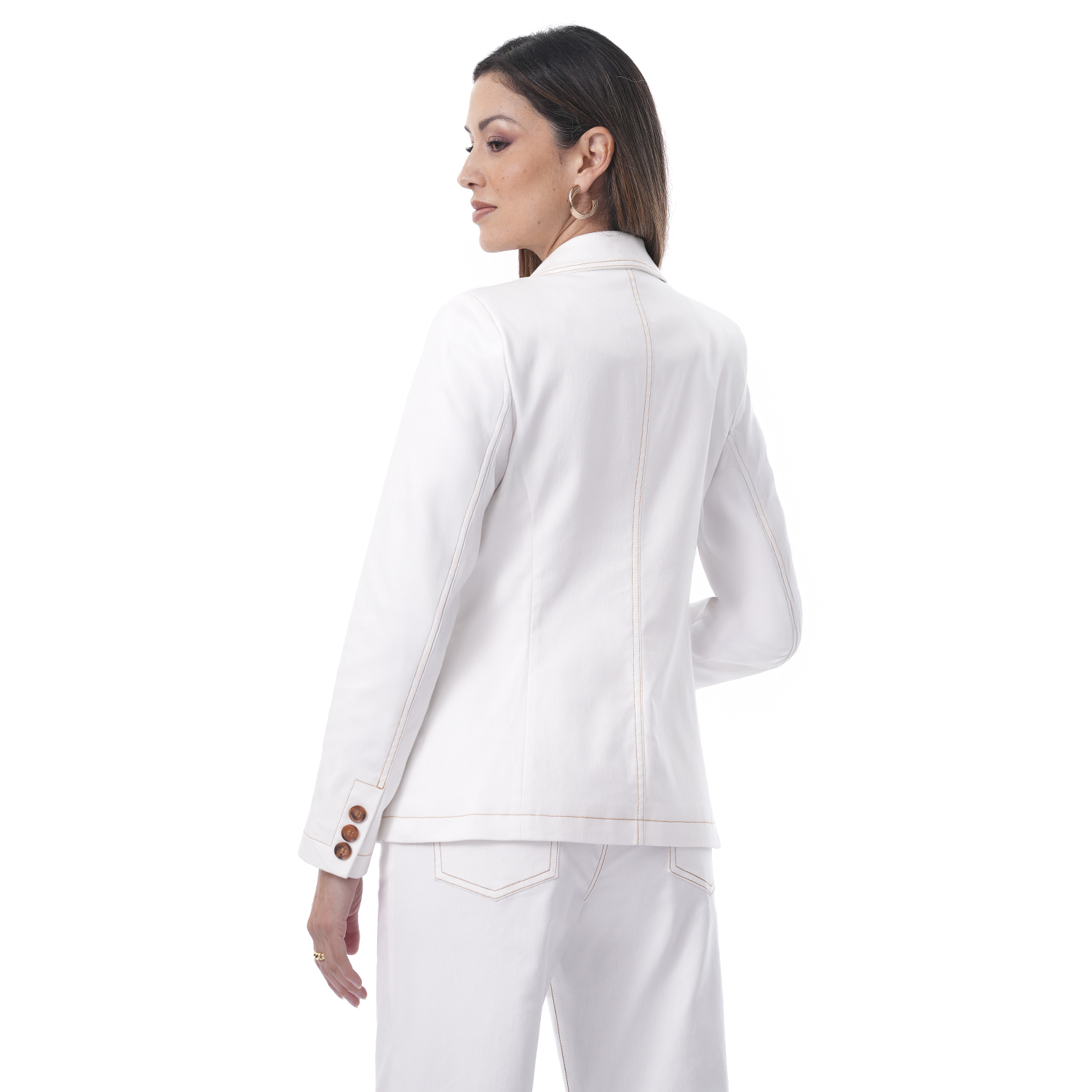 Este blazer aporta un estilo casual y moderno, ideal para elevar un look relajado con un toque sofisticado.