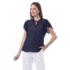 Esta blusa de color entero y manga corta ancha destaca por sus delicados detalles en el cuello que aportan un aire moderno. Su diseño la convierte en una pieza ideal para elevar looks versátiles.