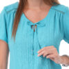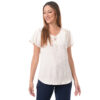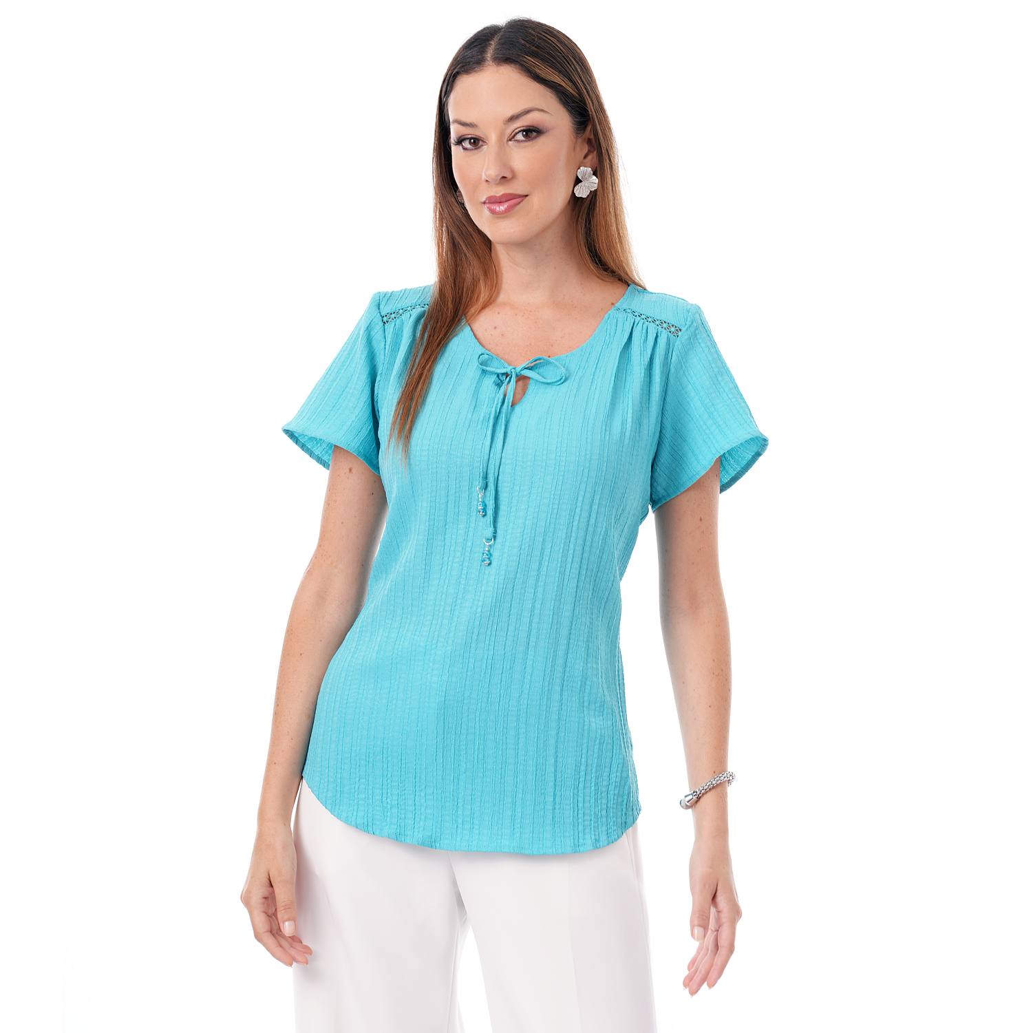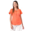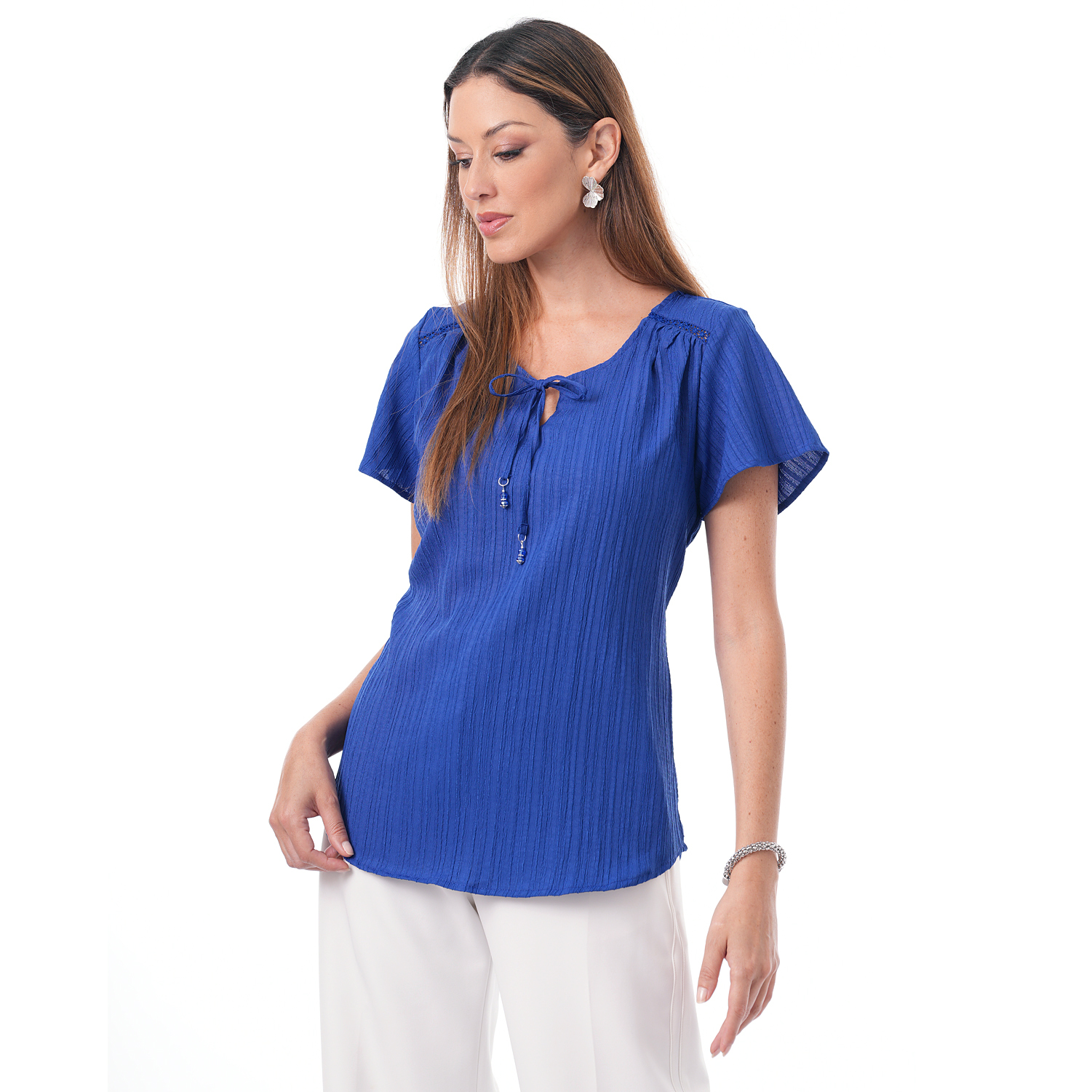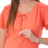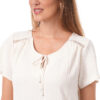 Esta blusa de color entero con detalles aporta un toque sutil de diseño que realza el look, ideal para crear combinaciones modernas y femeninas con versatilidad.