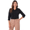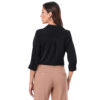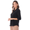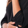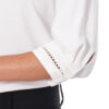Esta blusa de color entero con detalle de bipiur manga 3/4 destaca por su diseño elegante y femenino.