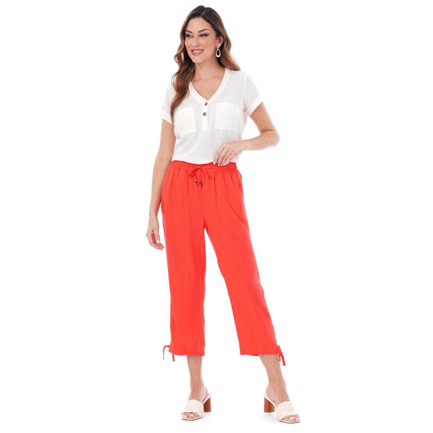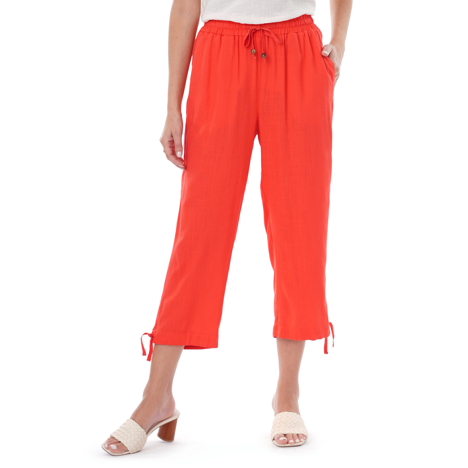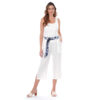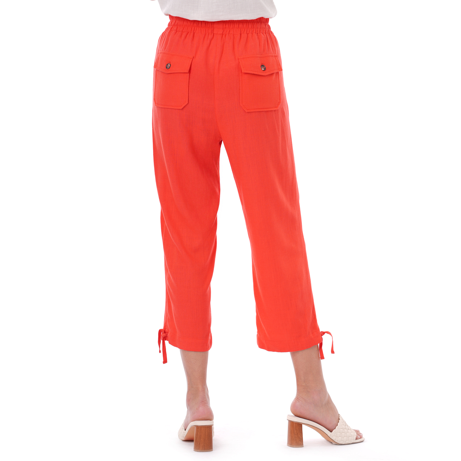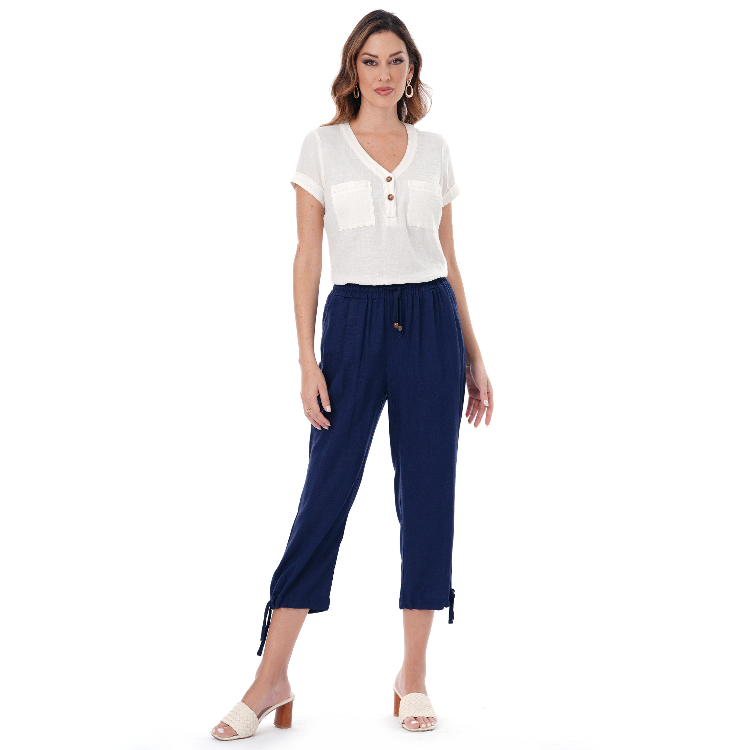 Este capri de color entero presenta un diseño limpio y versátil, ideal para crear looks actuales con una silueta definida.