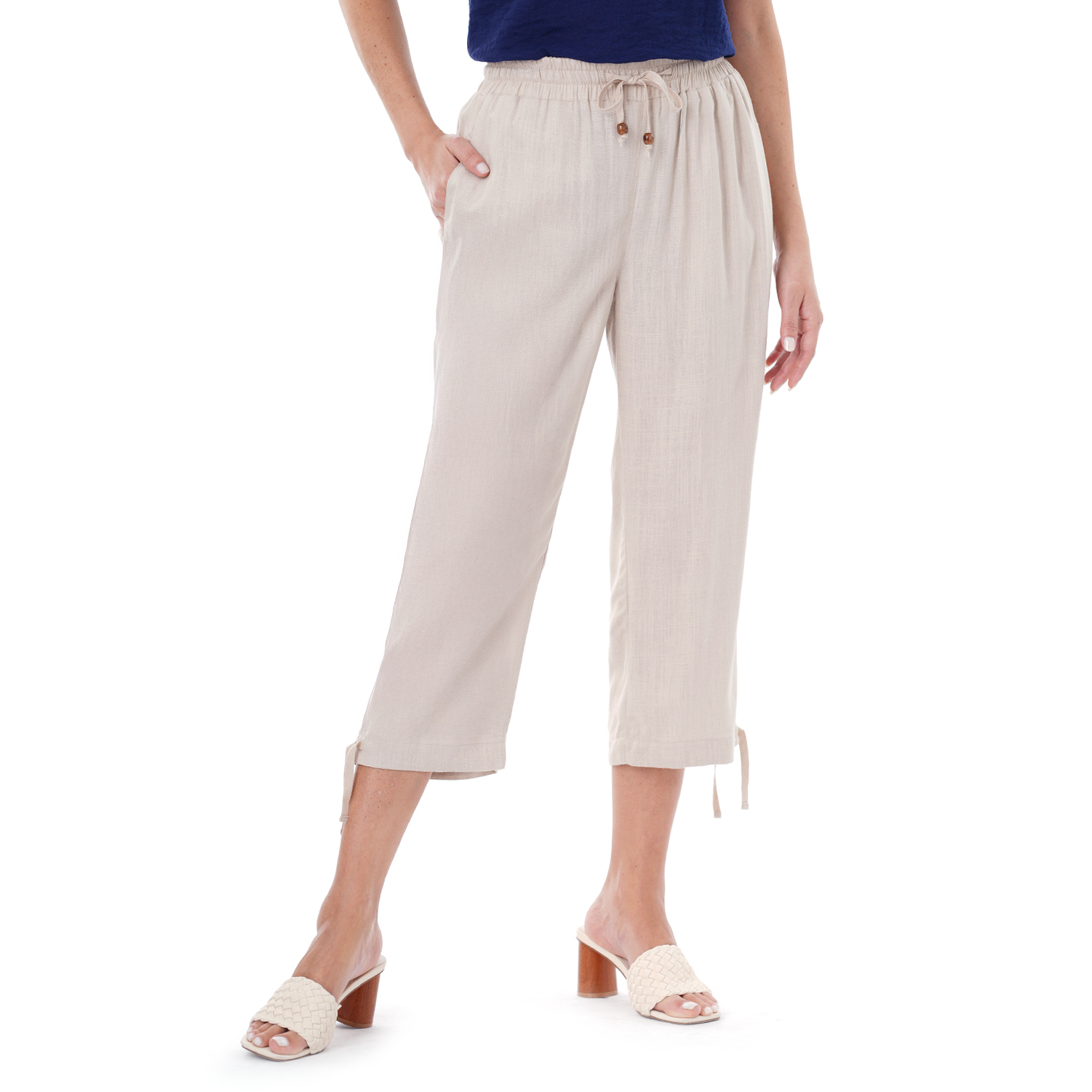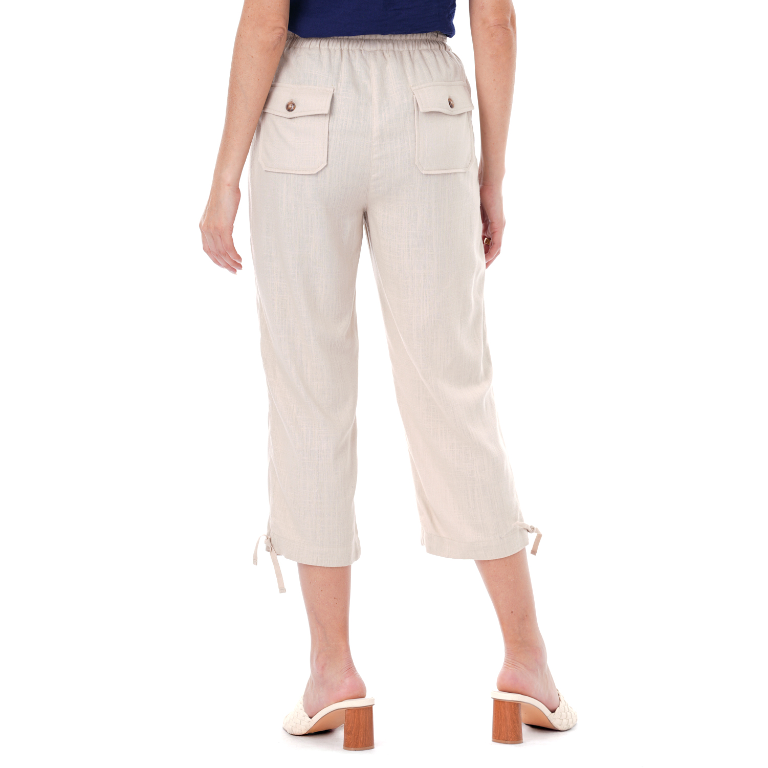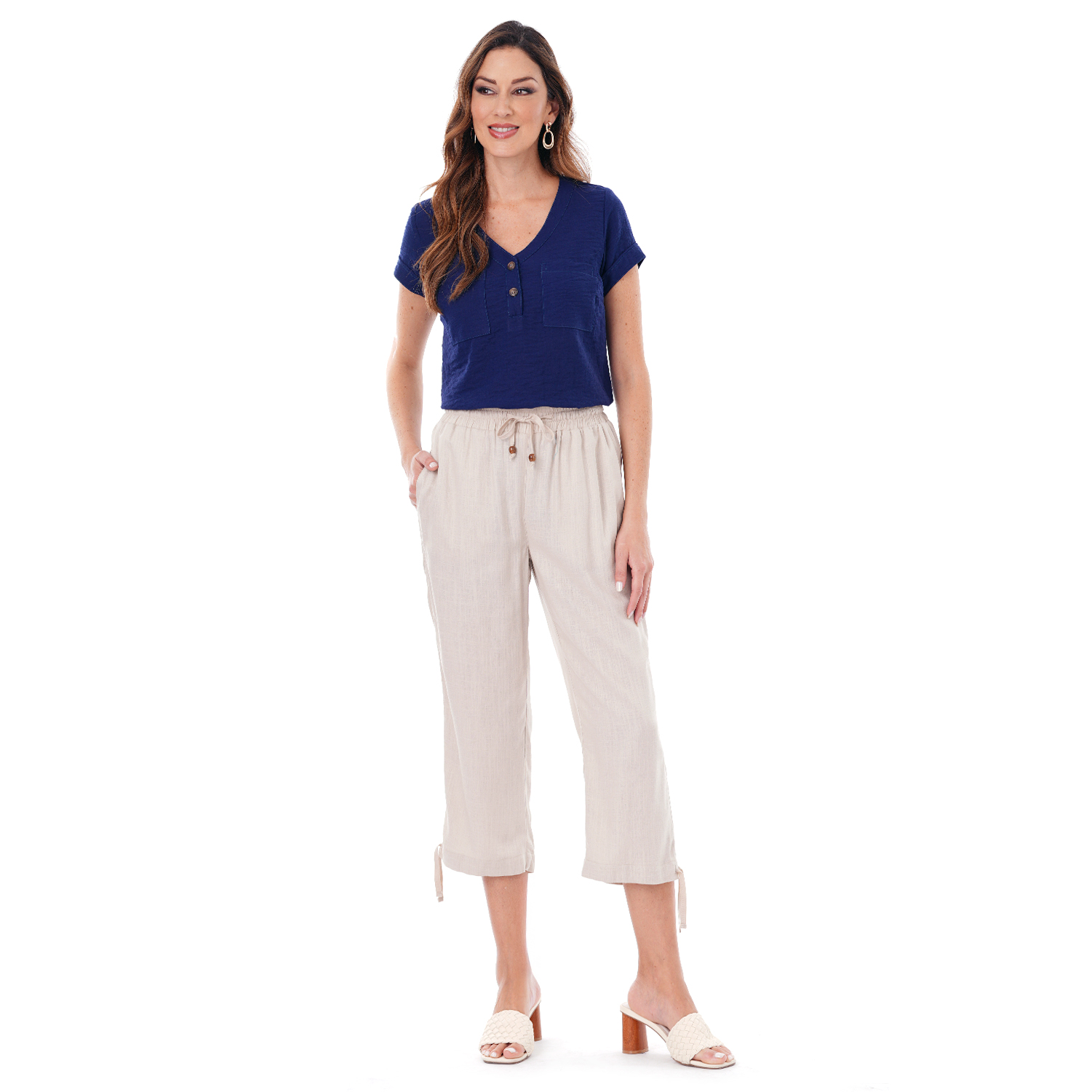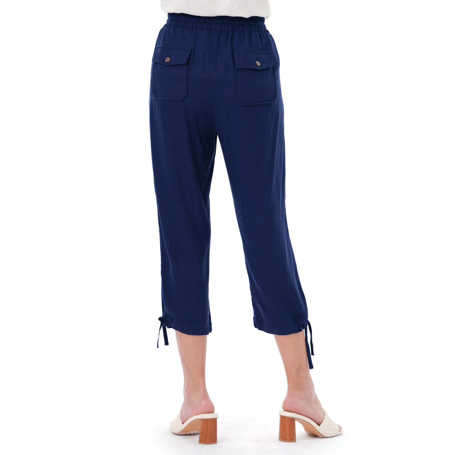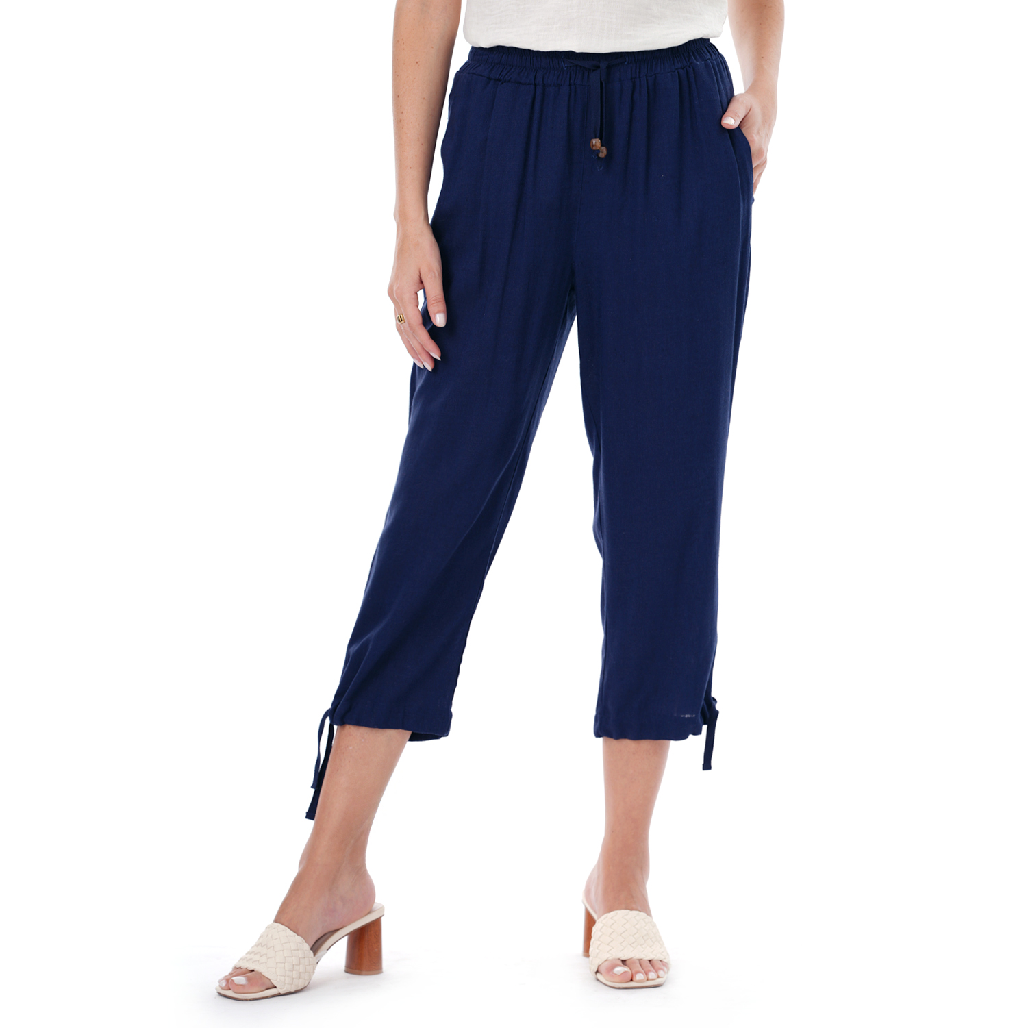 Este capri de color entero presenta un diseño limpio y versátil, ideal para crear looks actuales con una silueta definida.