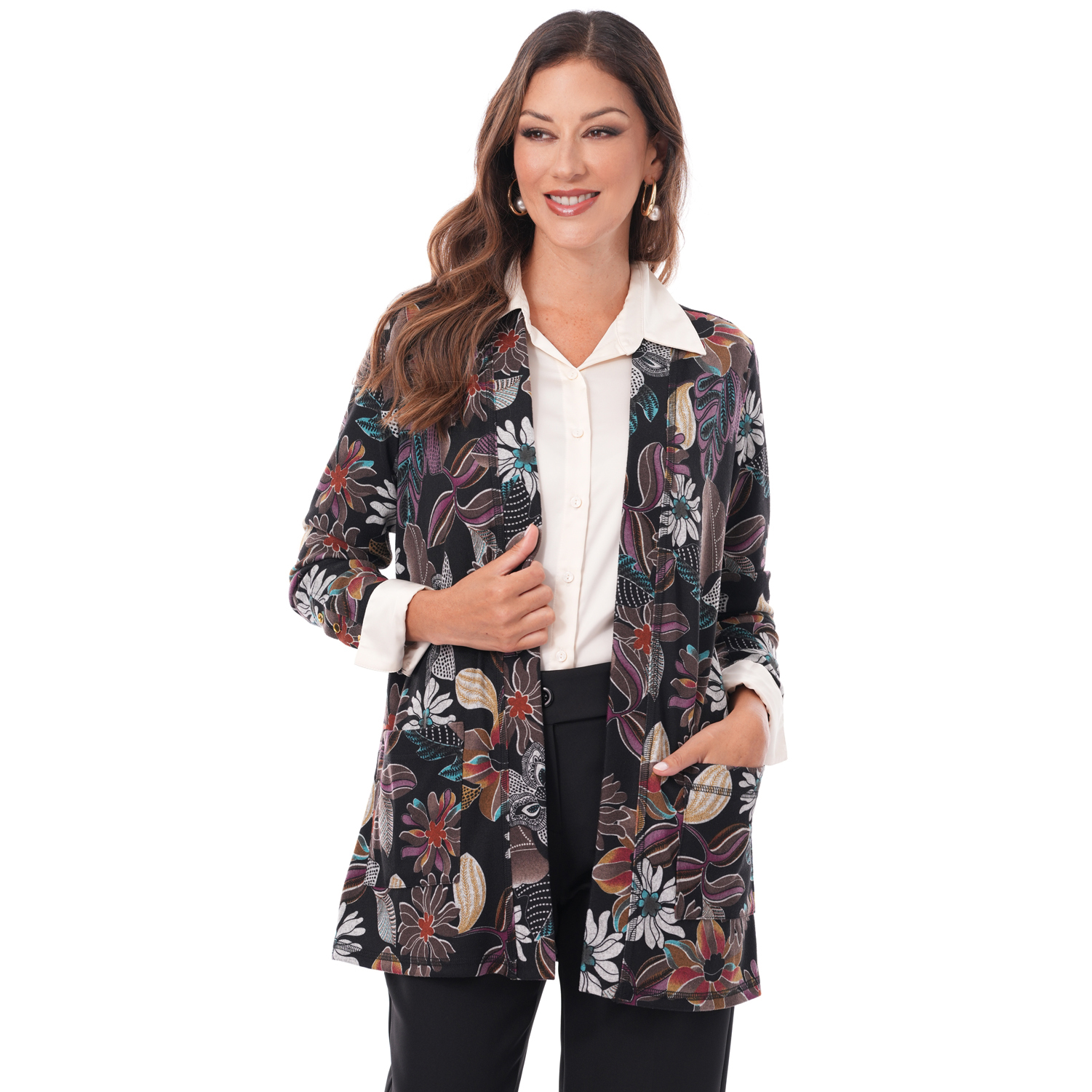 Este cardigan destaca por su diseño elegante y versátil, una prenda ideal para complementar cualquier look con un toque de estilo y sofisticación.