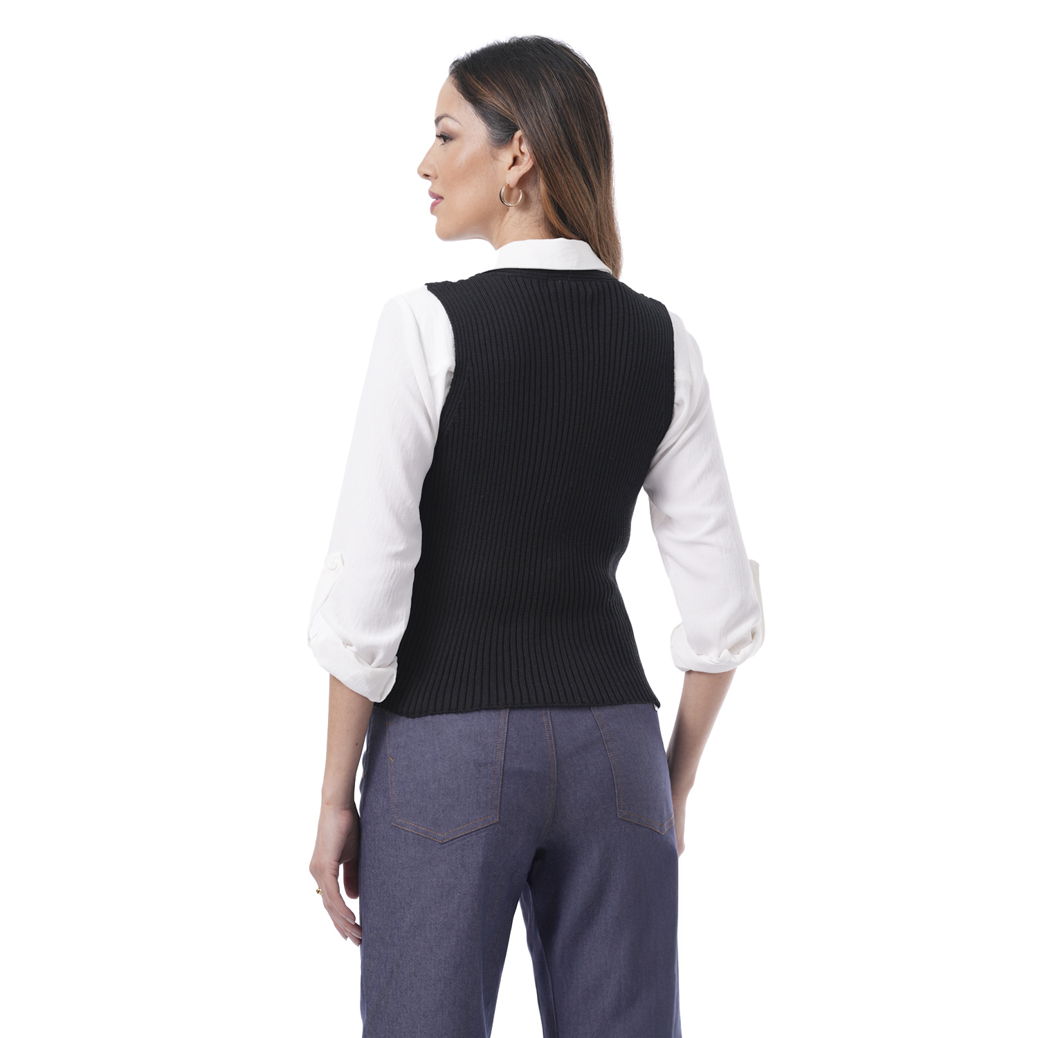Este chaleco combina elegancia y estilo moderno en una prenda versátil. Su diseño estructurado realza cualquier look aportando un toque sofisticado y contemporáneo.
