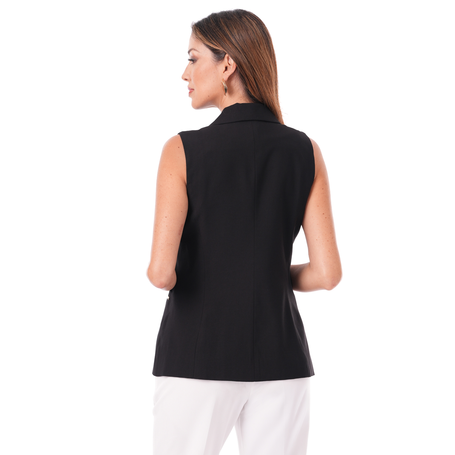 Este chaleco aporta estructura y equilibrio al look, creando combinaciones elegantes con discreta sofisticación.
