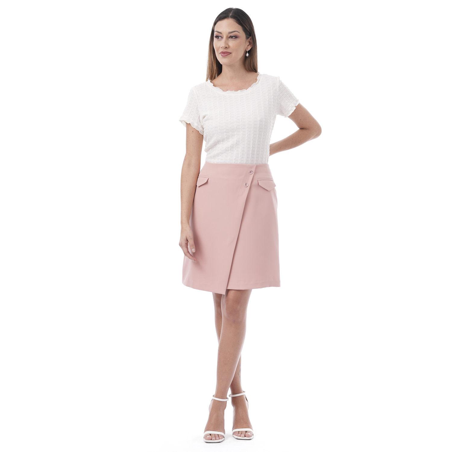 Esta falda de color entero con delicados detalles combina un diseño clásico con un ajuste moderno, ideal para crear looks versátiles que se adaptan tanto al día como a la noche.