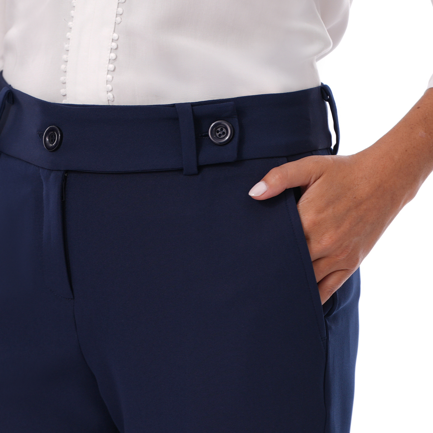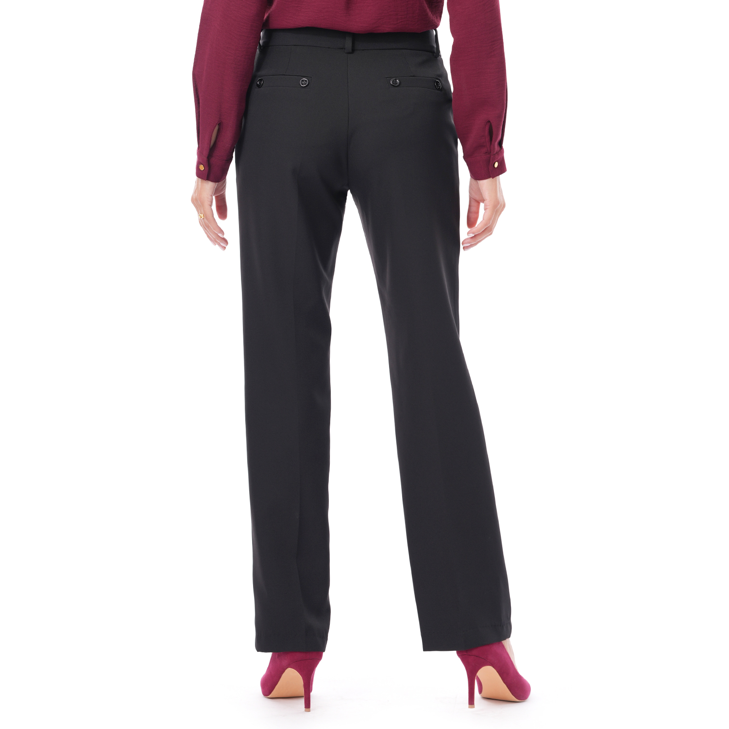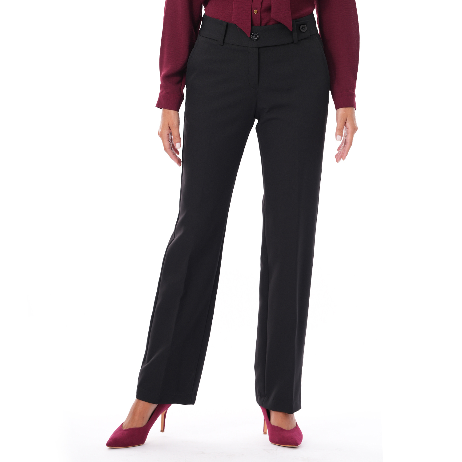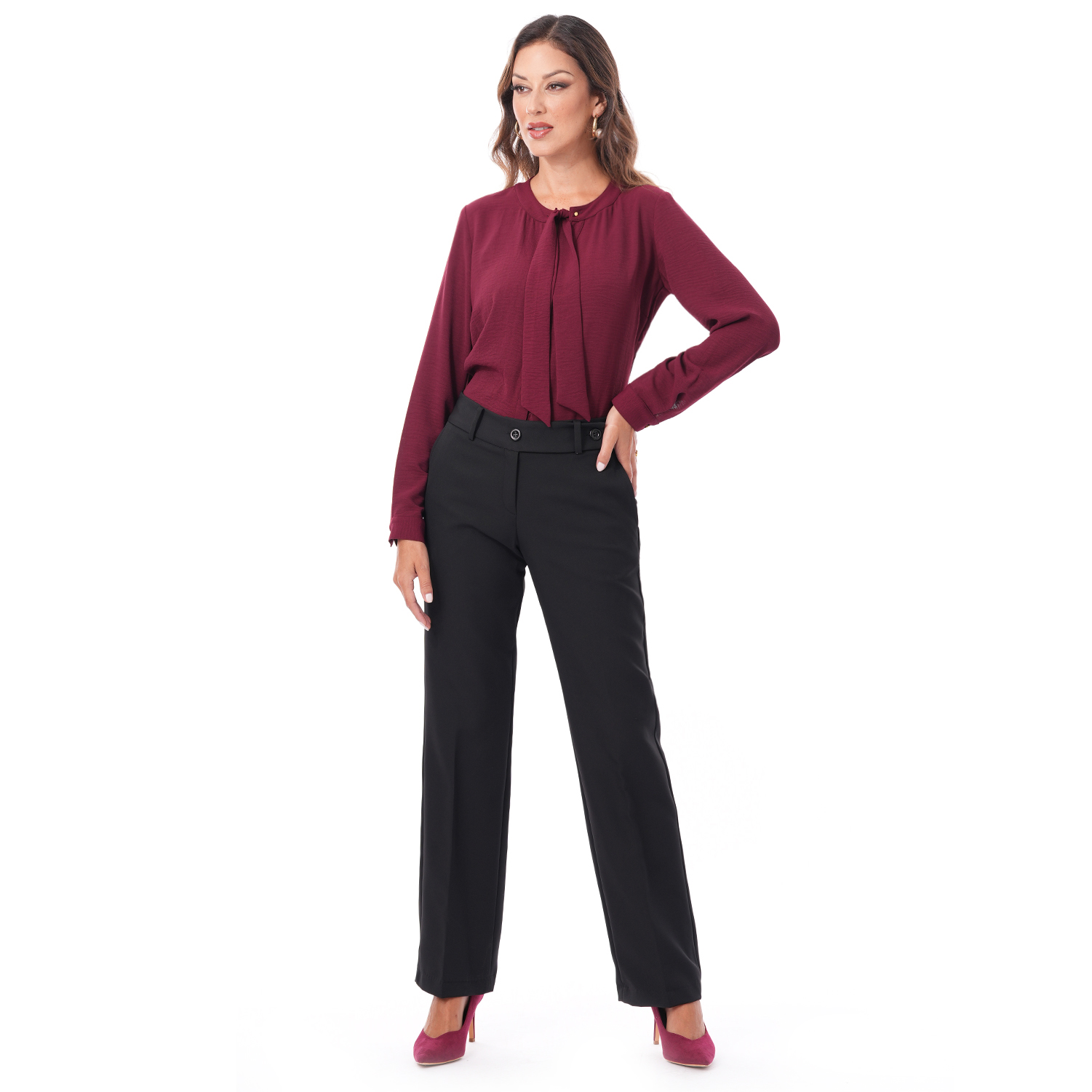 Este pantalón de color entero con detalle destaca por su diseño elegante y versátil, una prenda que aporta sofisticación y estilo a cualquier look.