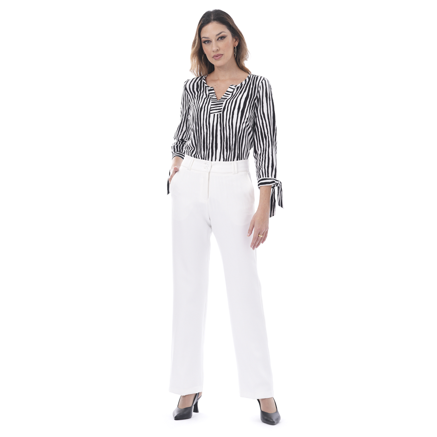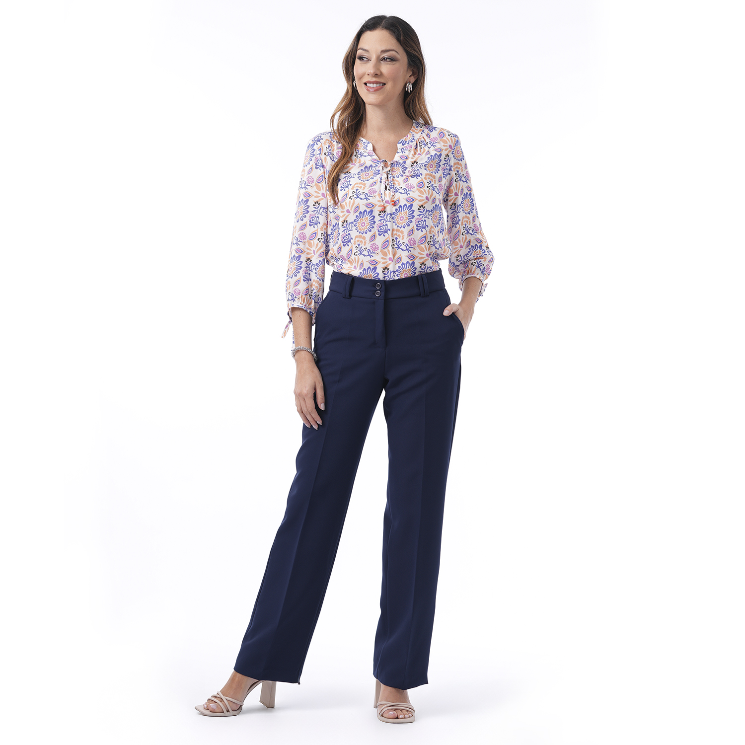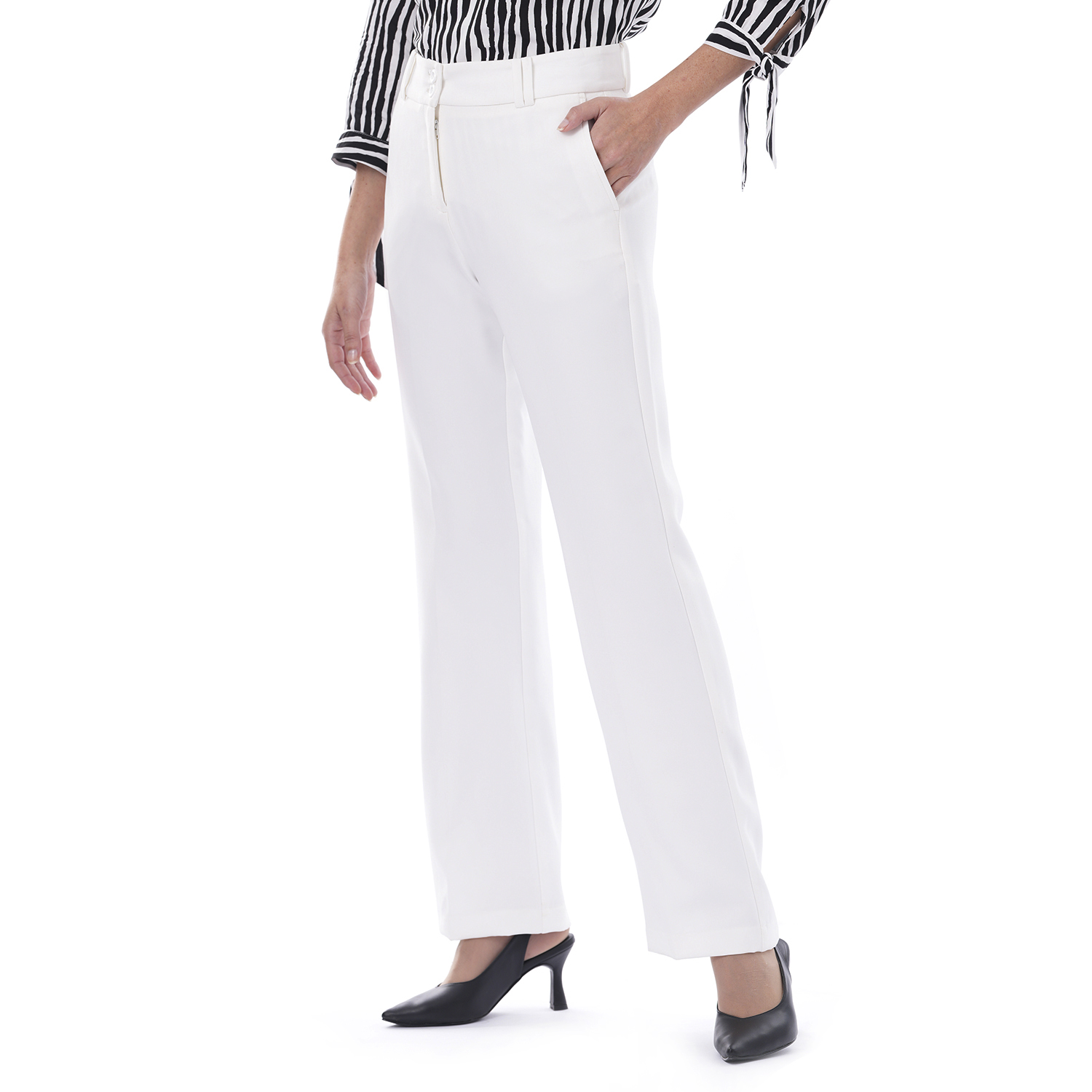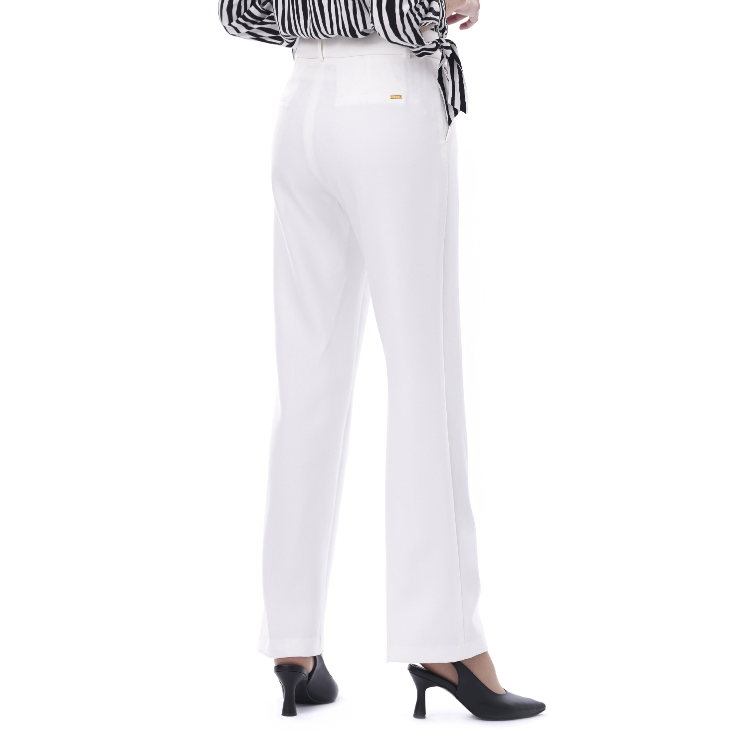 Este pantalón de color entero realza la silueta con un corte moderno y sofisticado, perfecto para crear atuendos elegantes y atemporales.