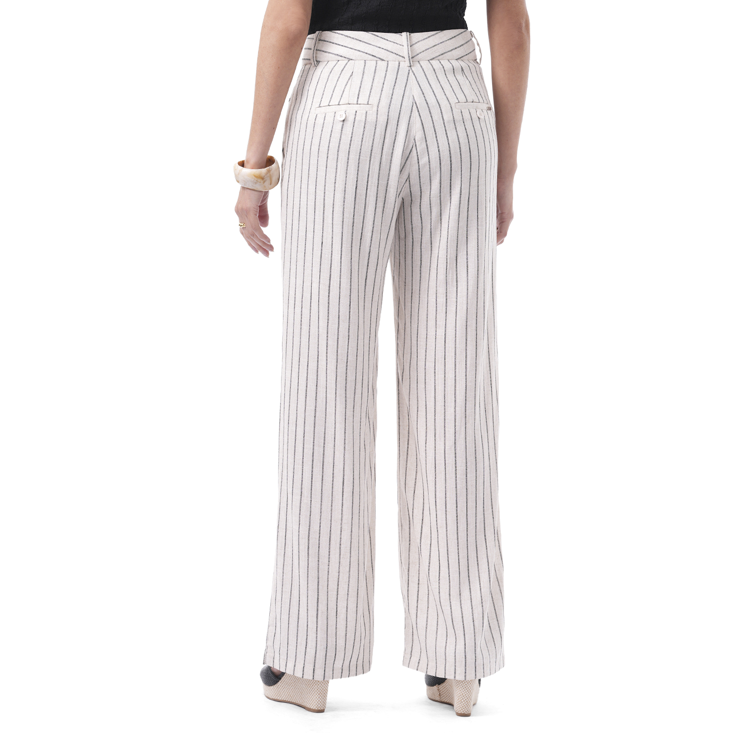 Este pantalón a rayas aporta un toque moderno y estilizado a cualquier look. Su diseño alargado y sofisticado crea una silueta elegante, ideal para elevar tus outfits.