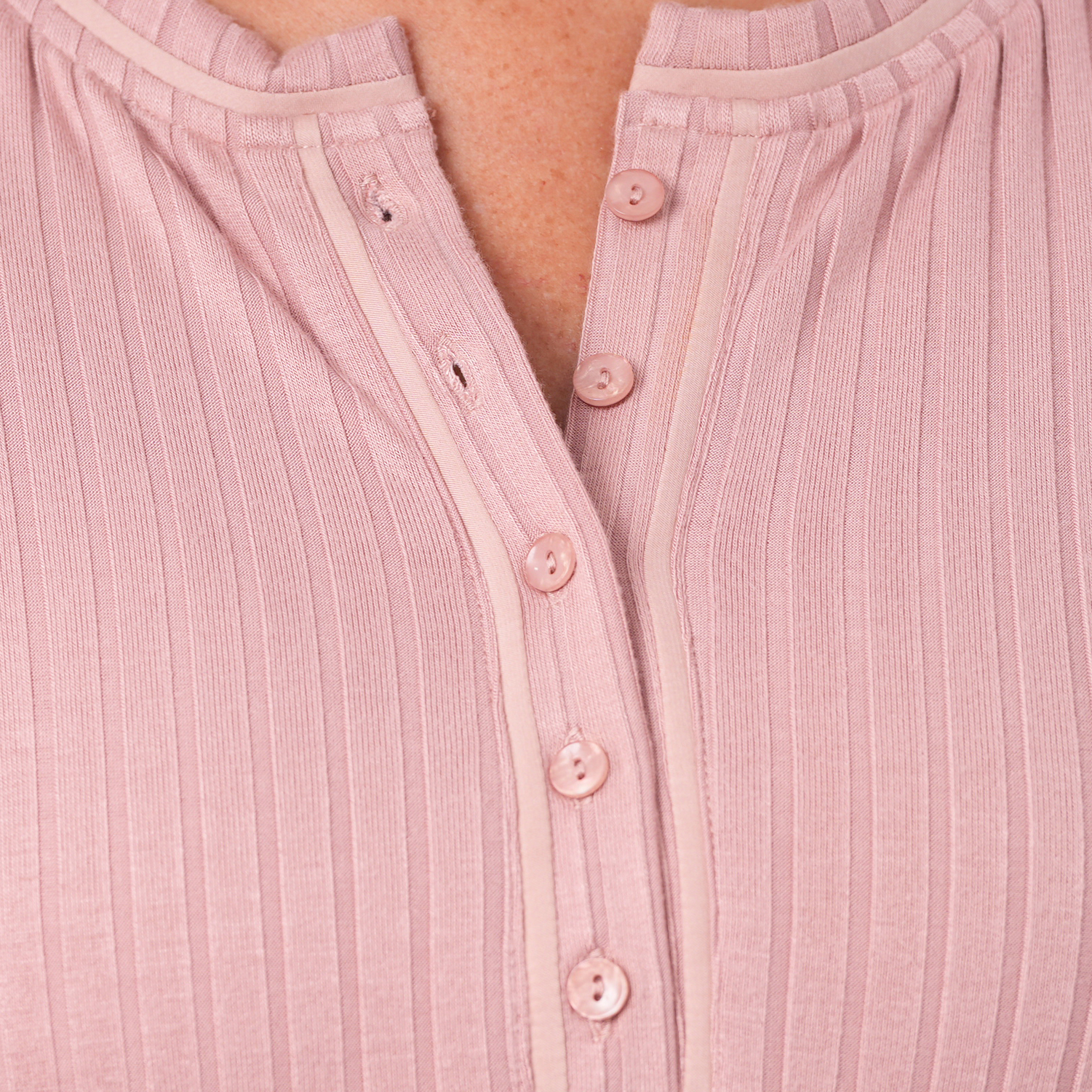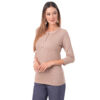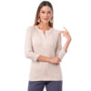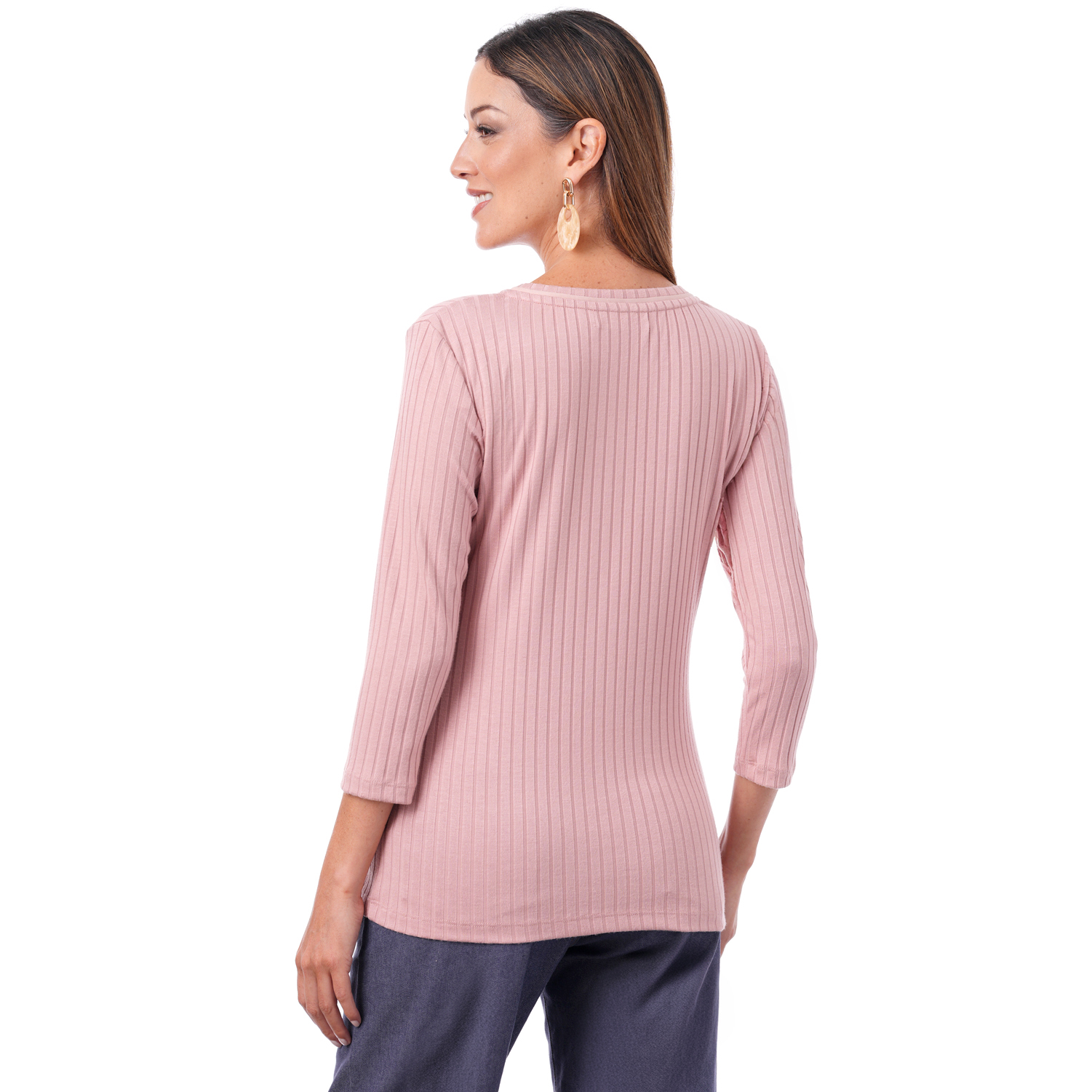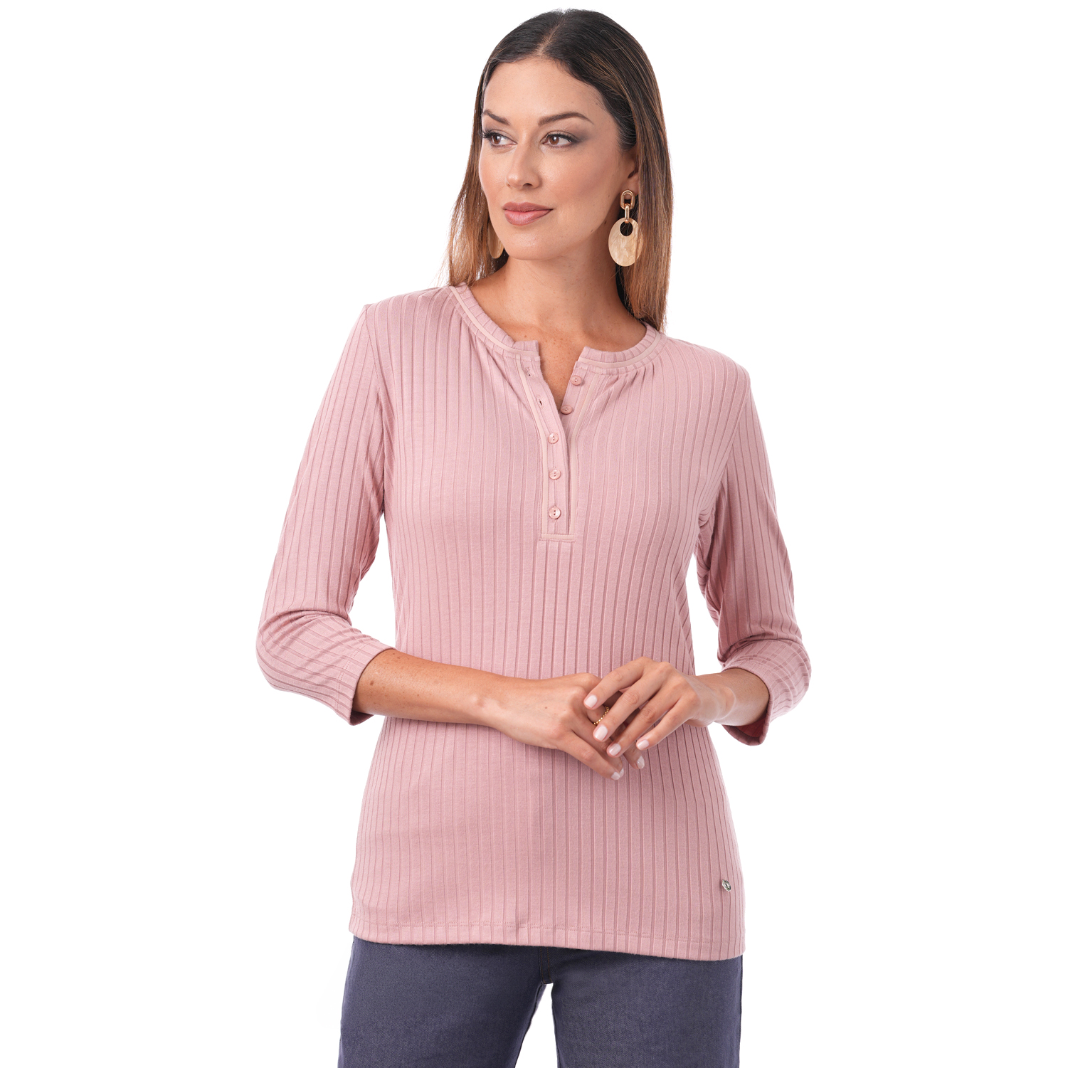 Este polo de color entero y manga 3/4 presenta una silueta sobria y versátil, ideal para un look ordenado y fácil de combinar.