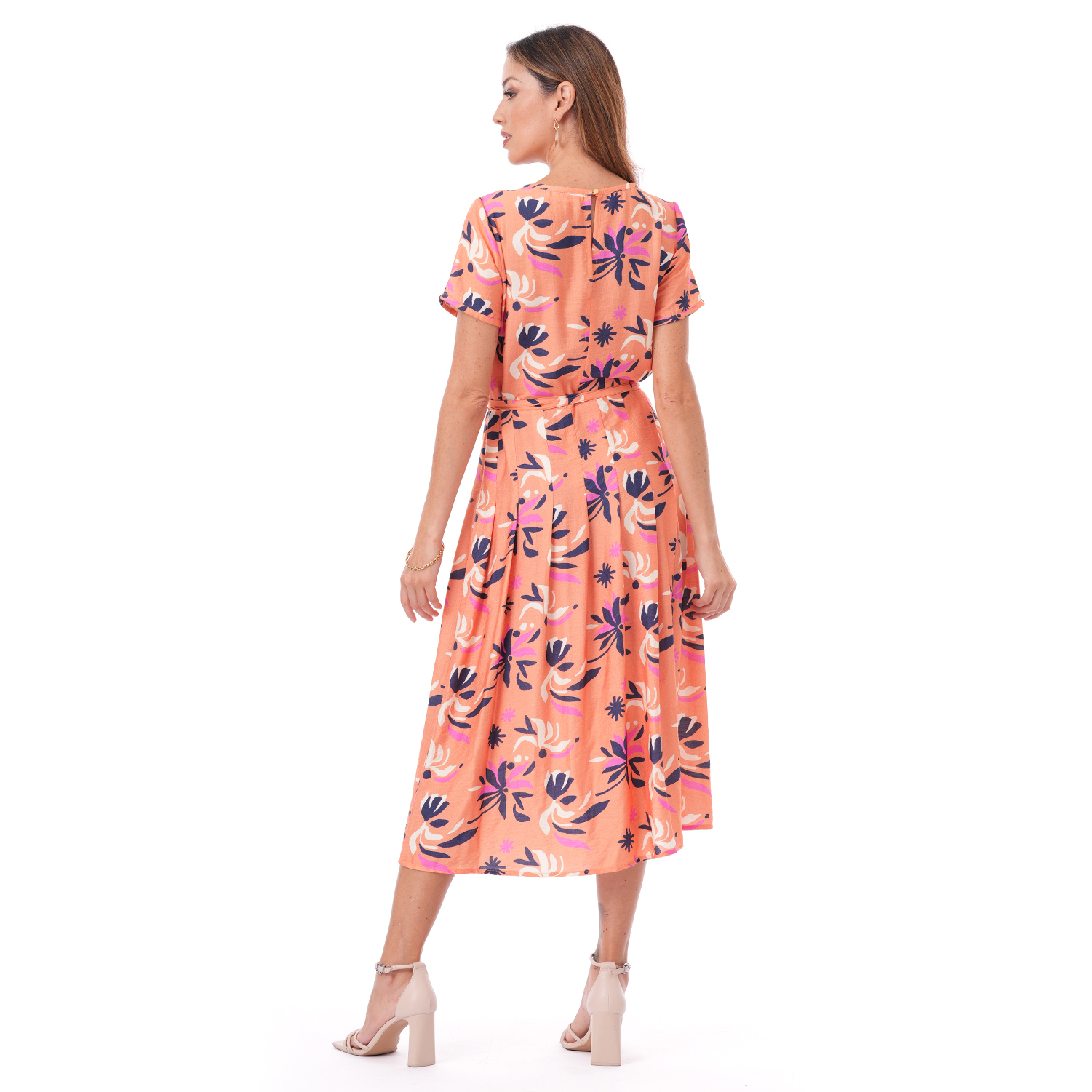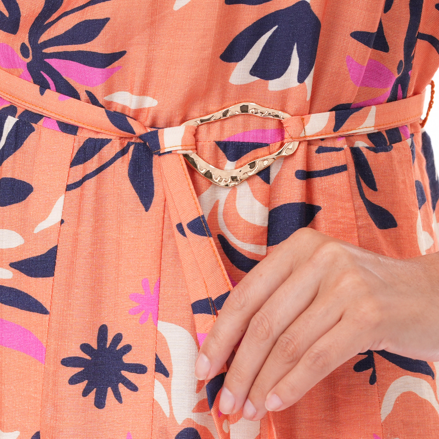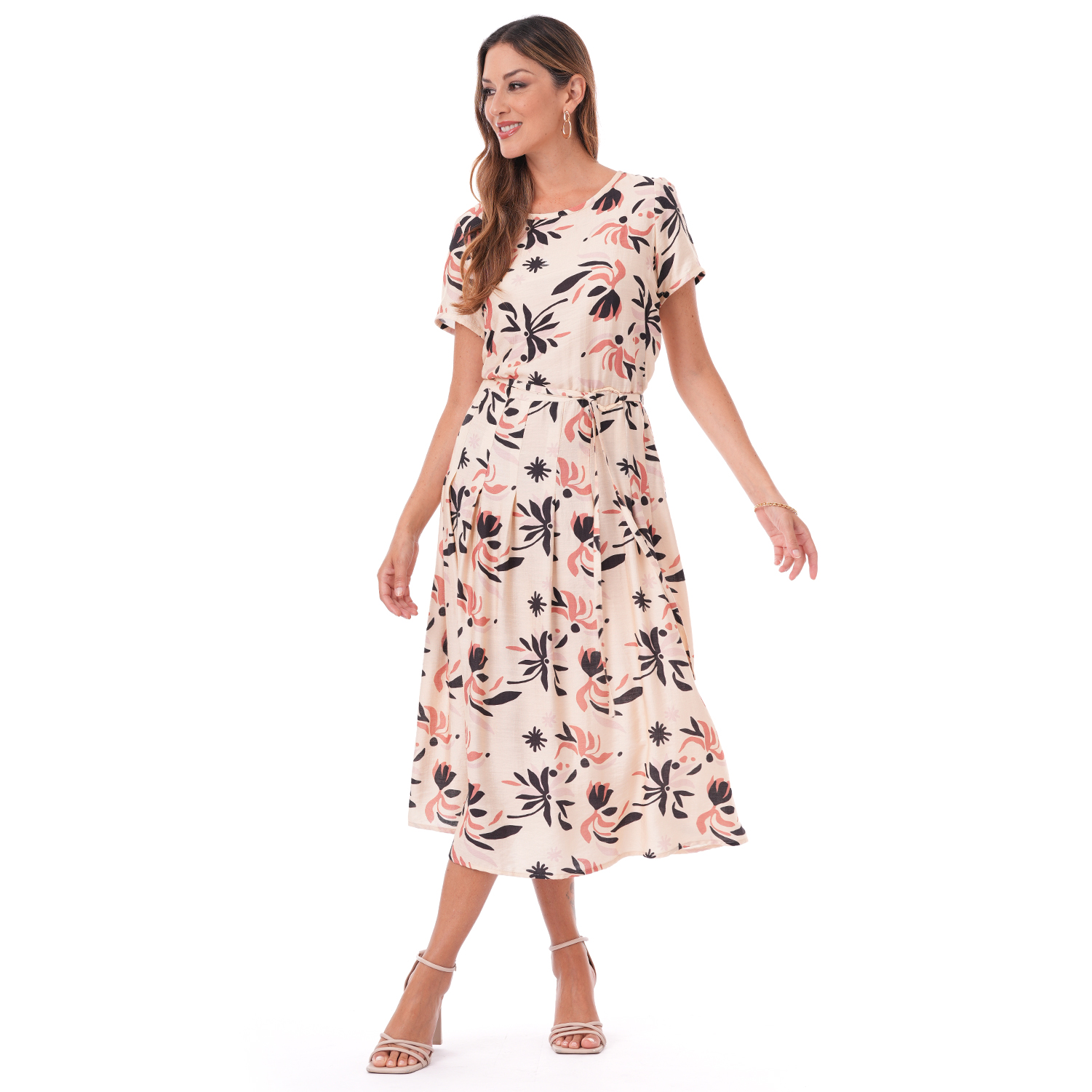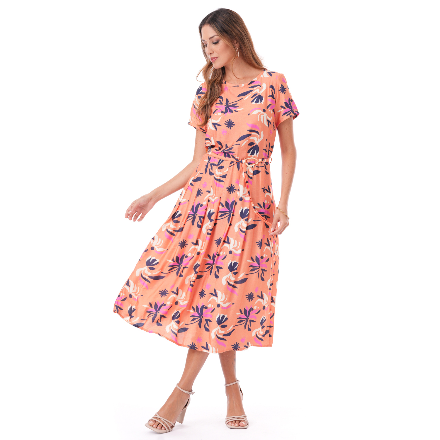 Este vestido manga corta estampado aporta dinamismo y elegancia a la silueta.